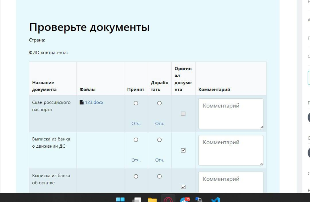 Дальше формируется задача для утверждающего персонала. Он может принять документы, отклонить их или вернуть на исправление. В случае отказа сделка откатывается на стадию связи с клиентом, комментарий передается менеджеру. Если пакет возвращен на исправление, по чекбоксам видно, какие позиции не приняты и с каким пояснением.