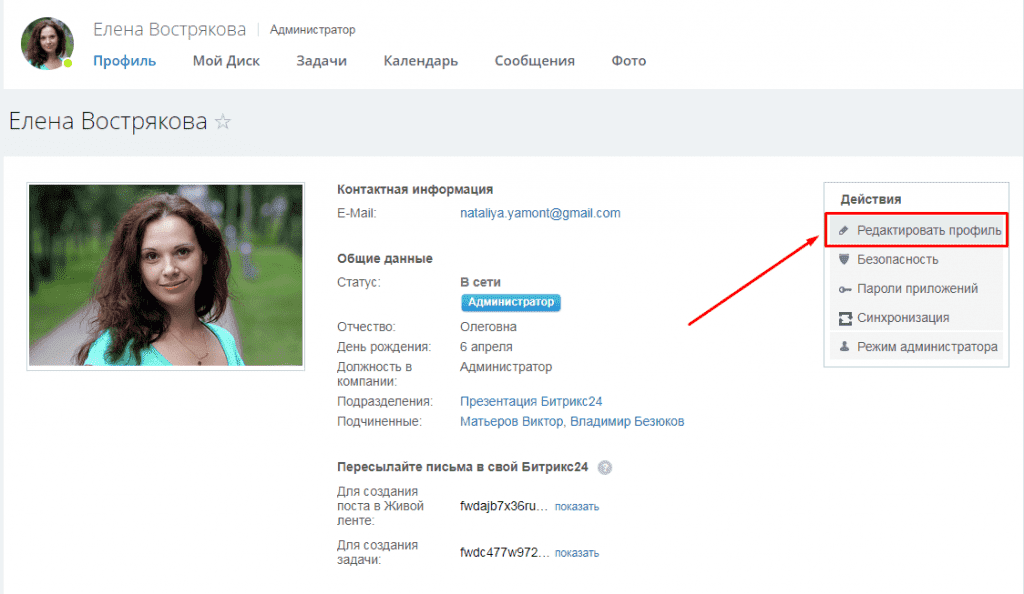 Добавьте свою фотографию, укажите личные и рабочие данные. Чем полнее вы заполните свой профиль, тем легче будет коллегам работать с вами