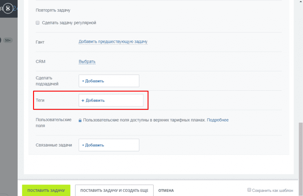 Указать теги, чтобы в дальнейшем можно было фильтровать задачи по этим тегам.