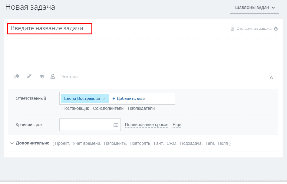 Задать название задачи (будет фигурировать в уведомления, живой ленте).