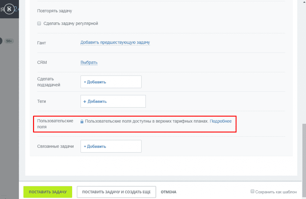 Есть возможность добавление пользовательских полей в зависимости от тарифного плана