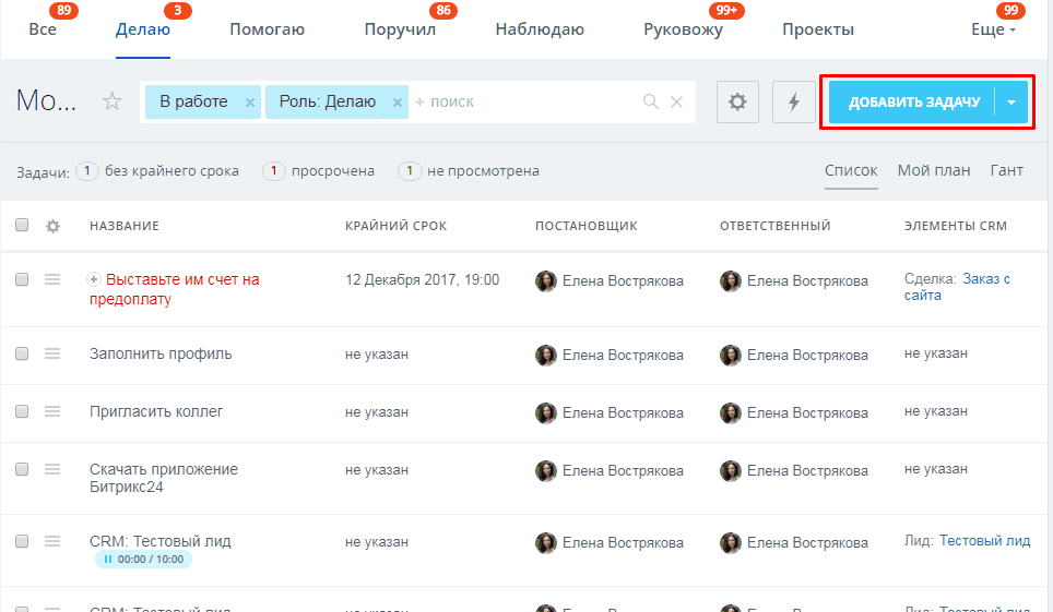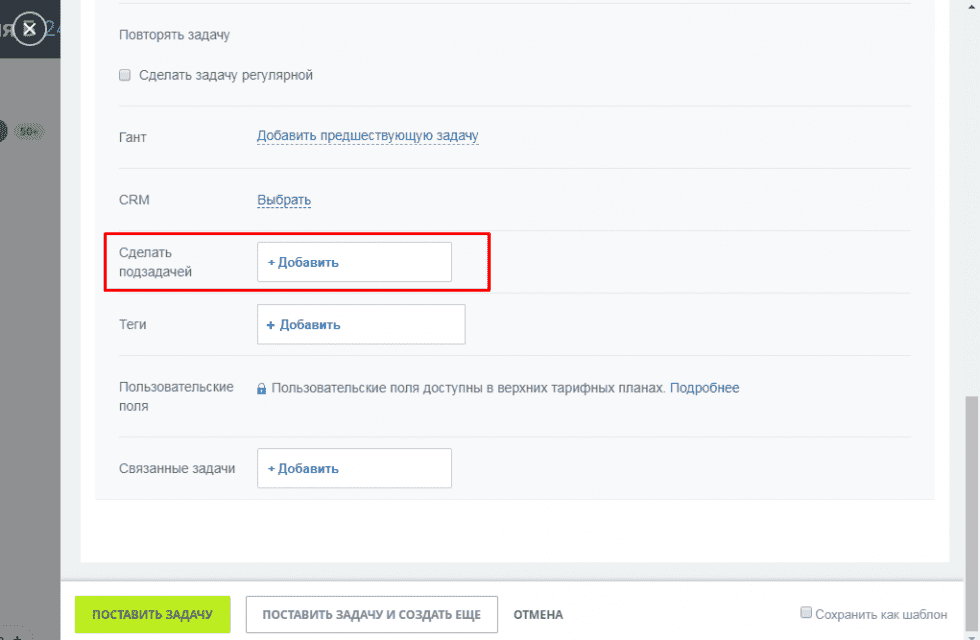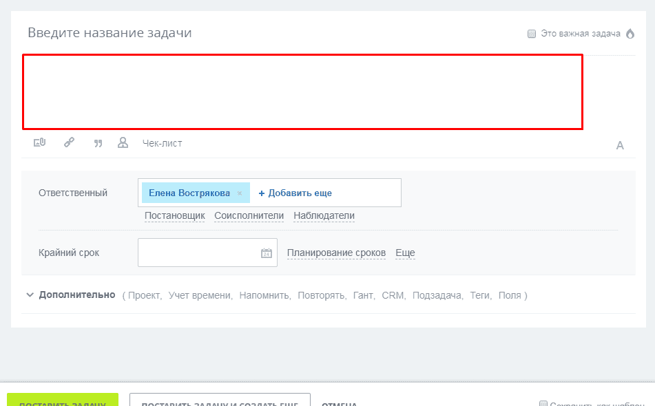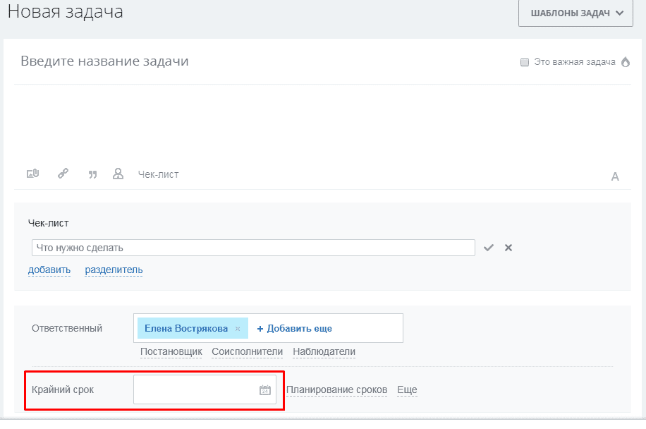 Назначить крайний срок (если задача создается внутри проекта, то её сроки не могут превышать сроки этого проекта).