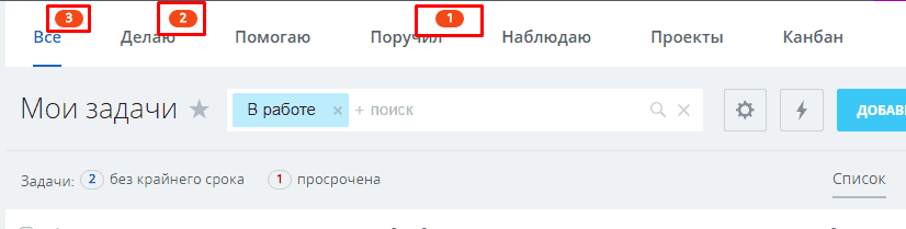 Счетчики показывают, что задачи требуют вашего внимания. Такие задачи в Битрикс24 включают в себя: